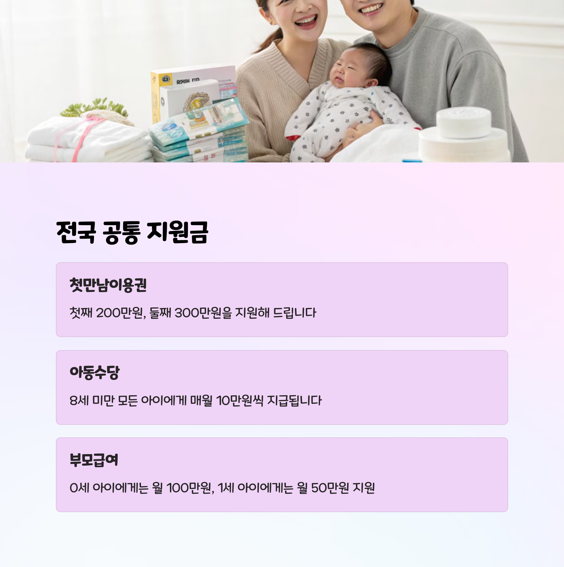 지원금으로 경제적인 부담을 덜고, 아기와 행복한 시간 보내세요! 💖