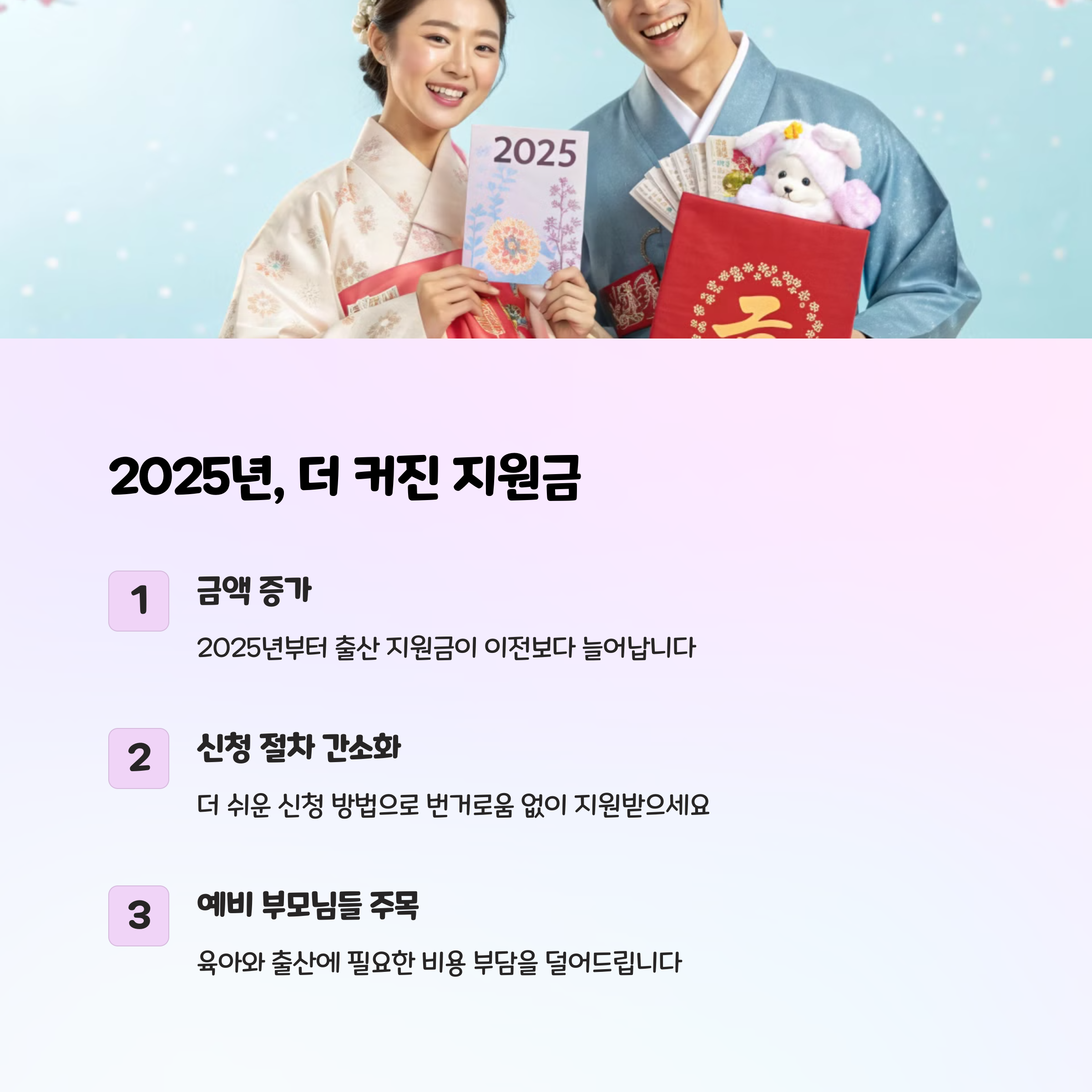 2025년에는 지원금 금액도 증가하고, 신청 방법도 간소화된다고 하니, 꼭 챙겨 가세요!