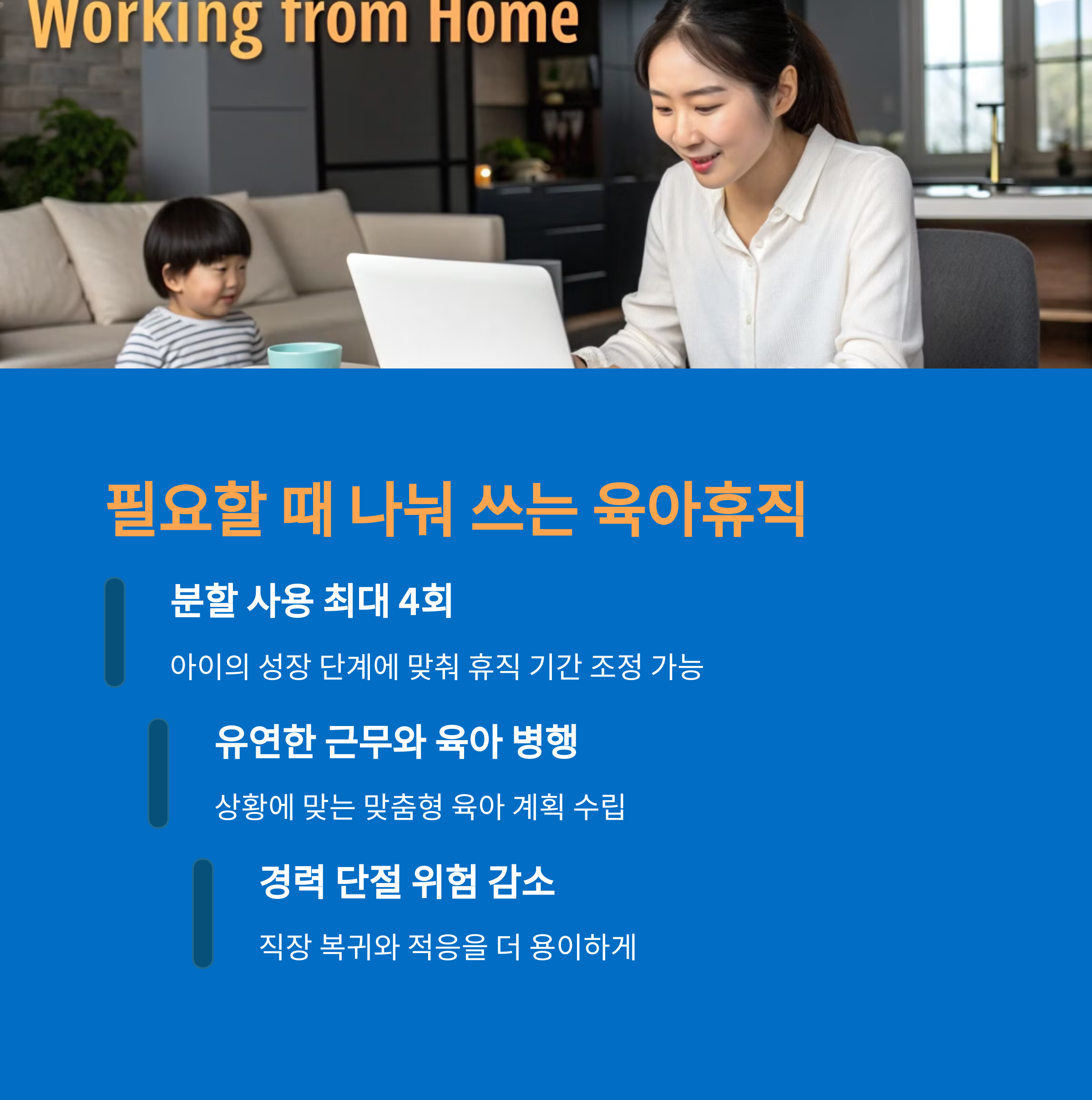 육아휴직은 이제 최대 4회까지 나누어 사용할 수 있으며, 배우자의 출산휴가도