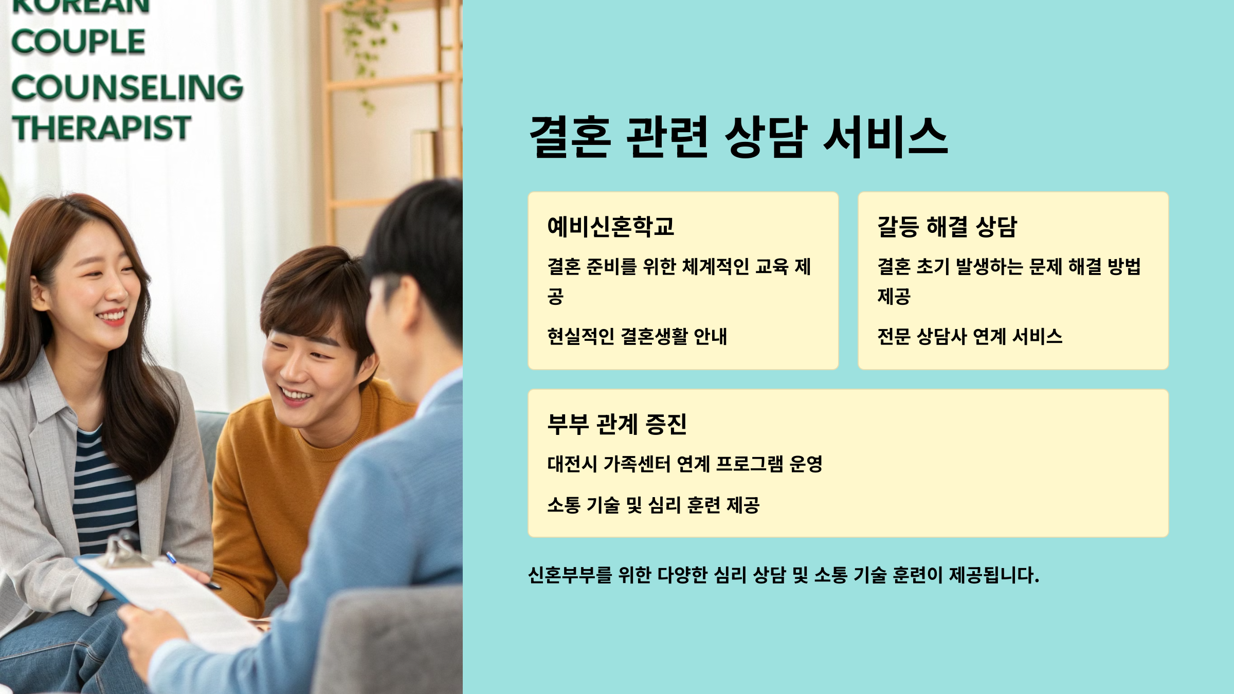 대전시는 결혼 후 발생할 수 있는 다양한 문제를 해결하기 위해 상담 서비스도 제공하고 있습니다. 결혼을 한 부부들이 겪을 수 있는 여러 어려움에 대해 전문 상담을 받을 수 있도록 돕고, 결혼 생활을 안정적으로 이어갈 수 있도록 지원합니다. 이는 경제적 지원 외에도 정신적, 사회적 지원을 제공하는 중요한 정책입니다. 이러한 지원이 결혼 장려 정책을 더욱 효과적으로 만들어 줍니다.