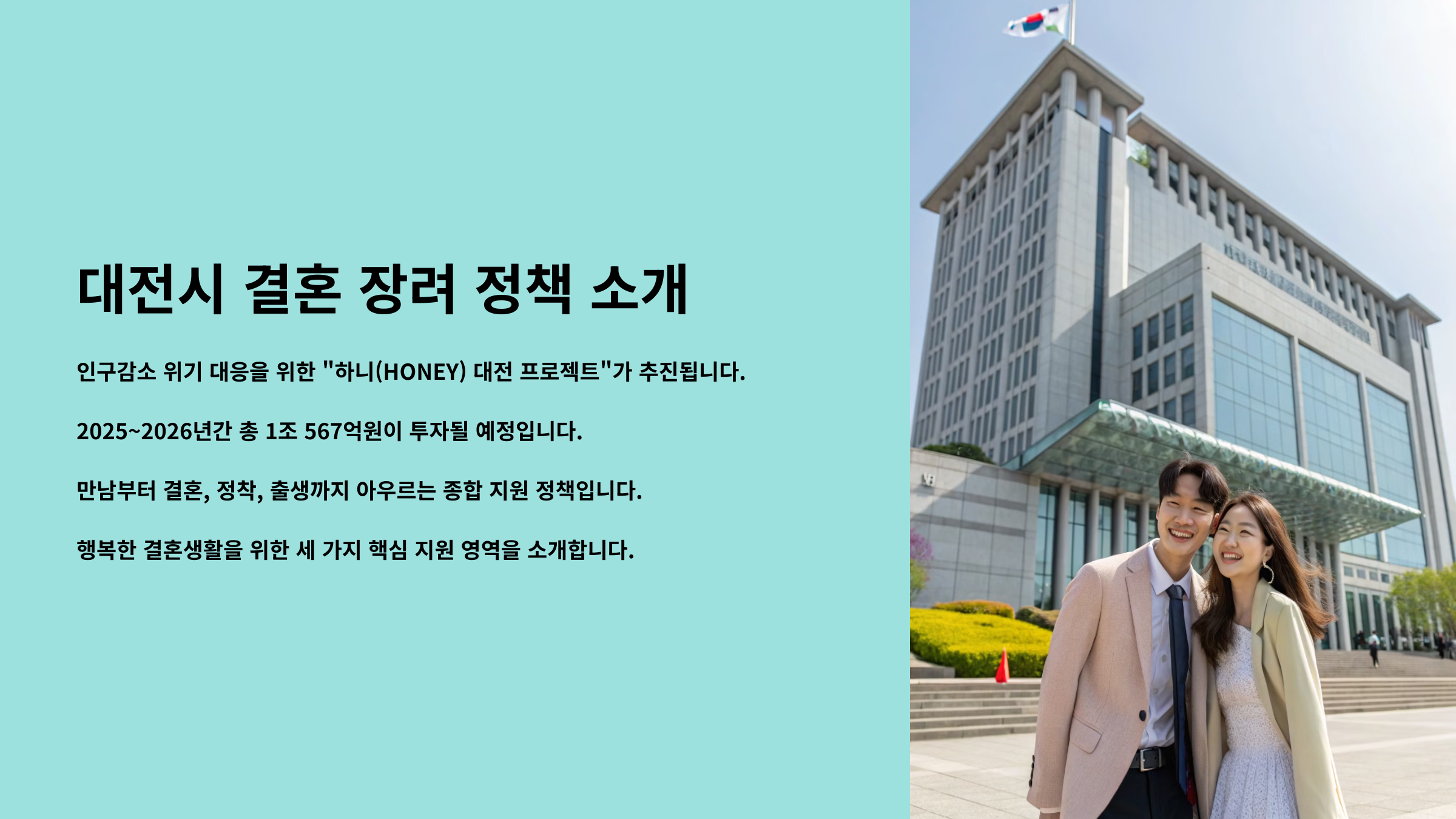 대전은 결혼을 장려하기 위해 다양한 정책을 시행하고 있습니다.