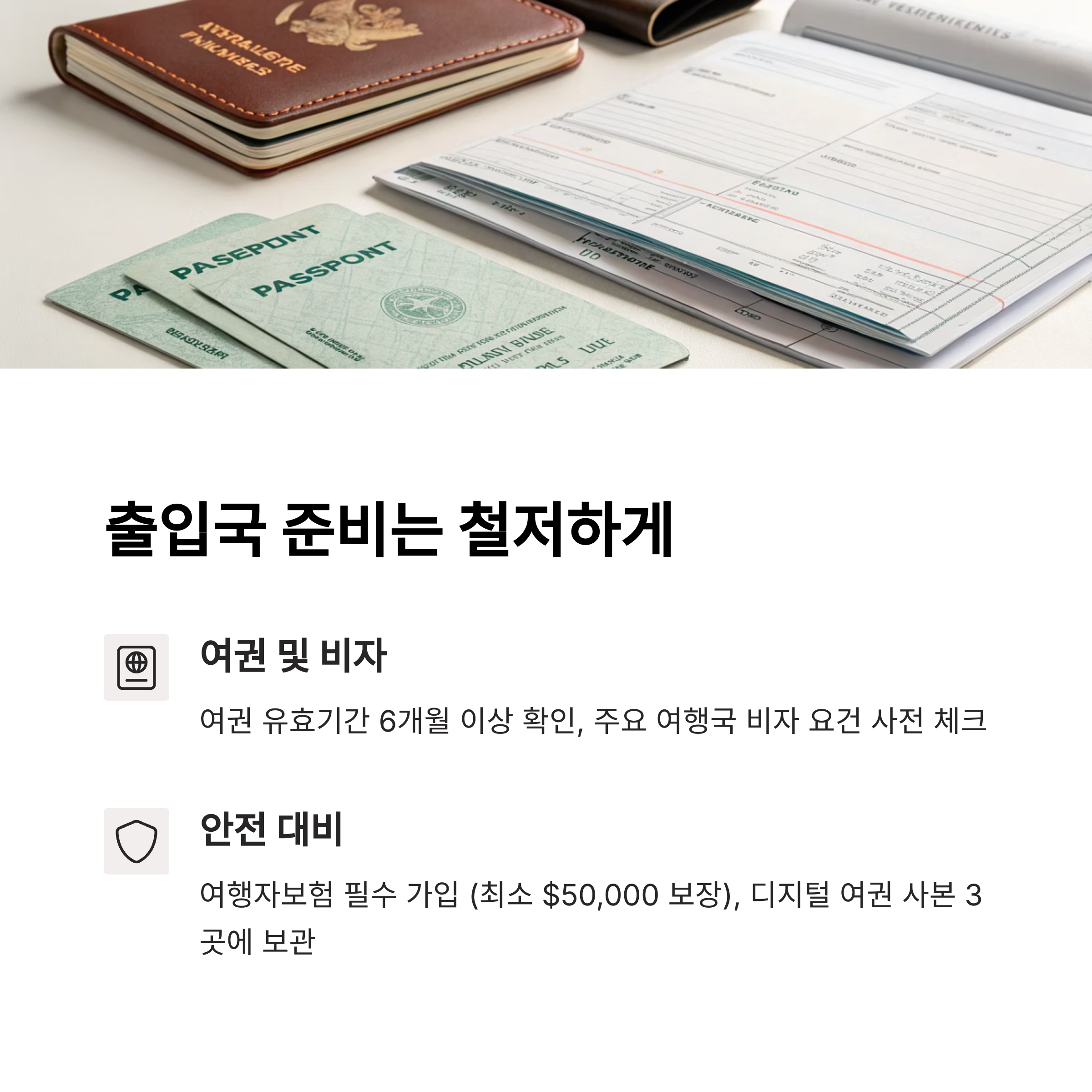 출입국 서류가 완벽하면 여행 초반부터 마음 편하게 출발할 수 있습니다.