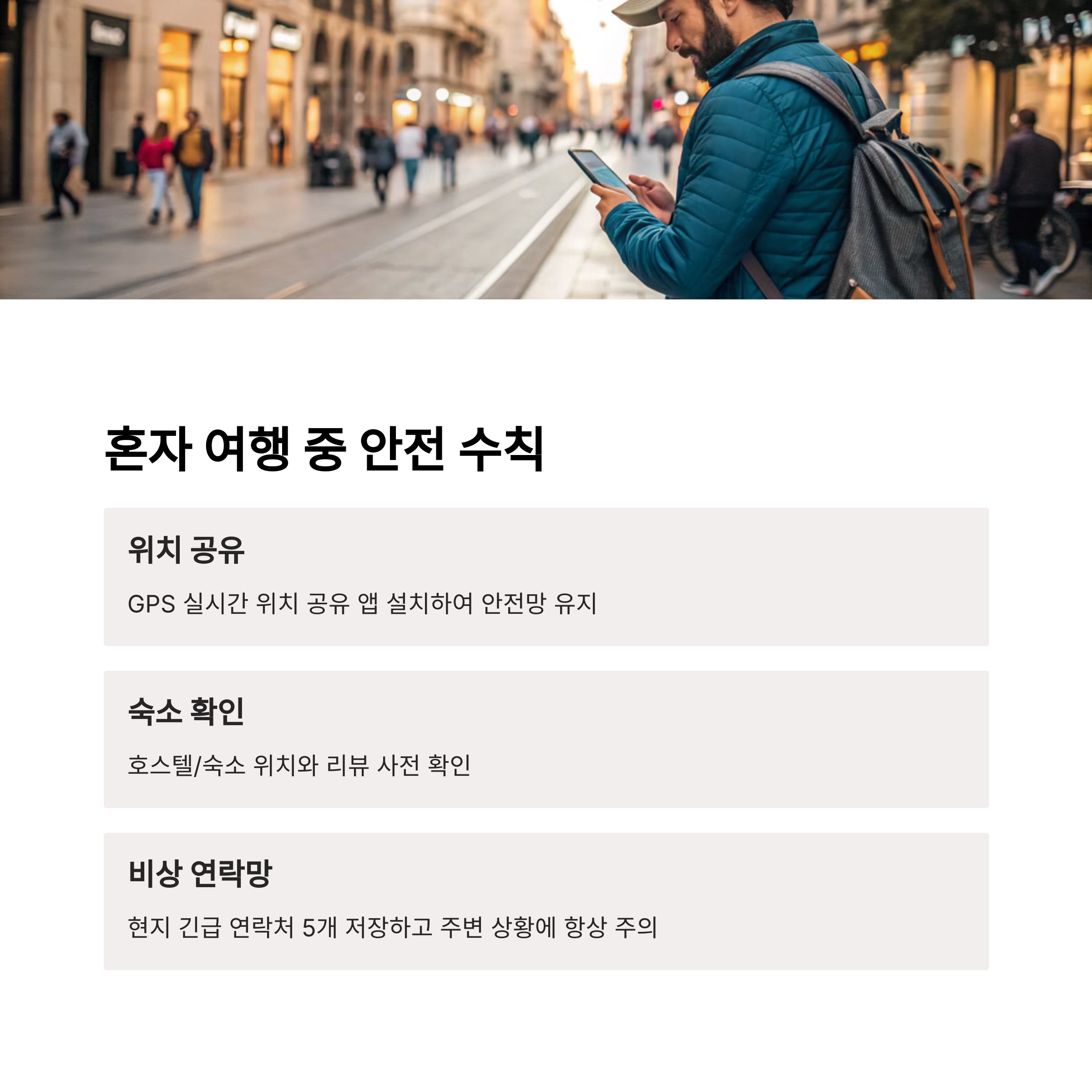 ✈️ 3. 혼자 여행 중 지켜야 할 안전 수칙