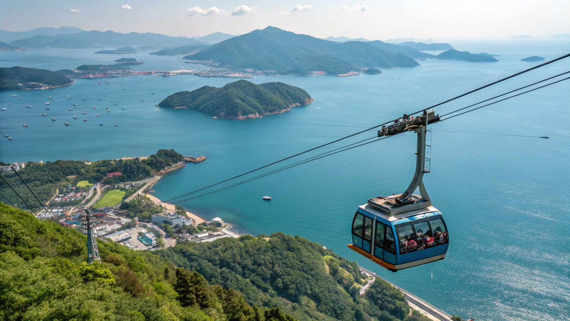케이블카 타고 미륵산 정상까지 올라가면 바다와 섬이 한눈에 내려다보여.