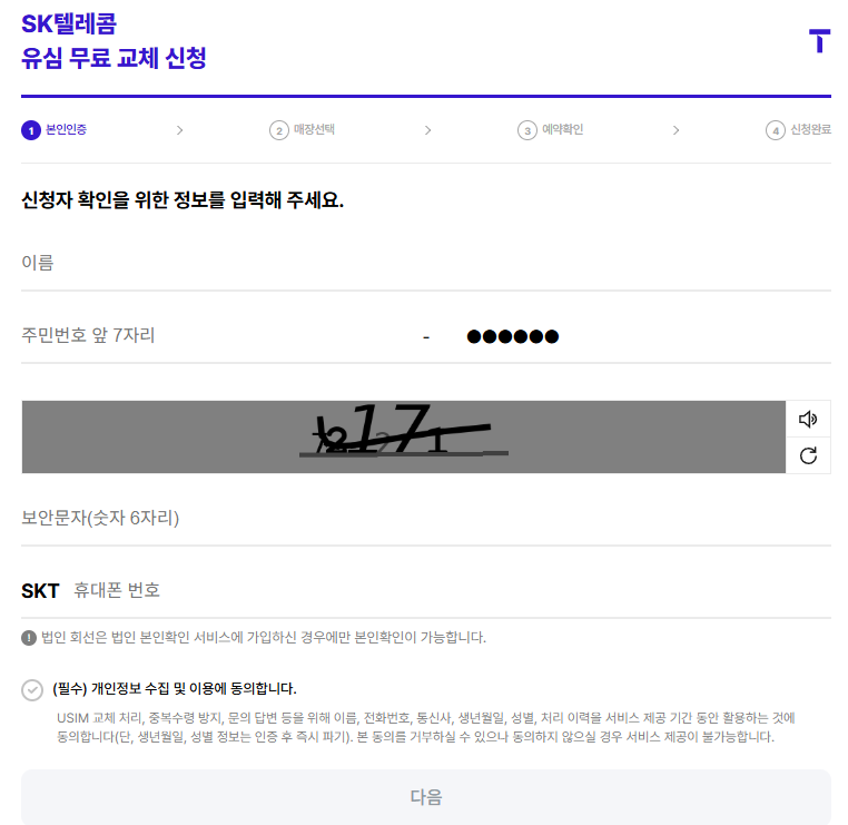 현재 SK텔레콤 유심 교체는 온라인 예약 후 지정한 T월드 대리점에서만 가능합니다